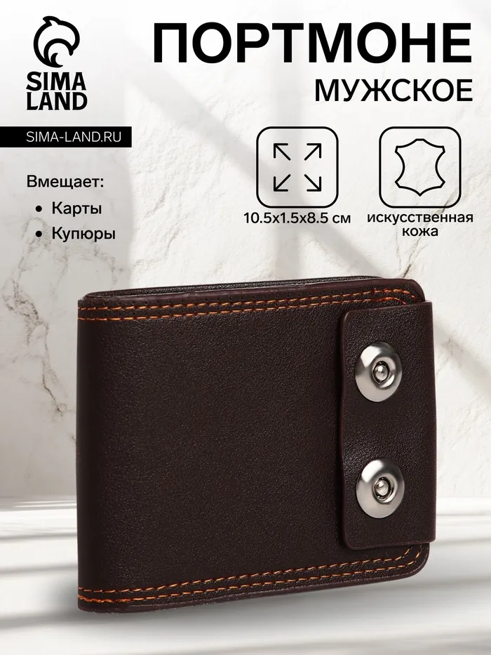 Портмоне мужское на магнитах, цвет коричневый — Характеристики