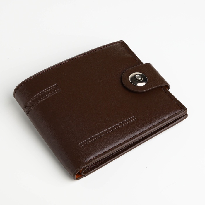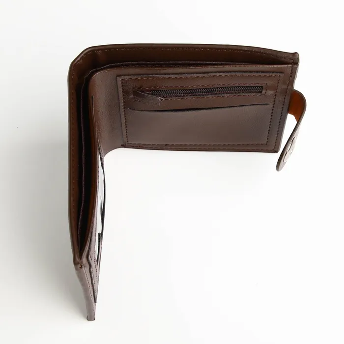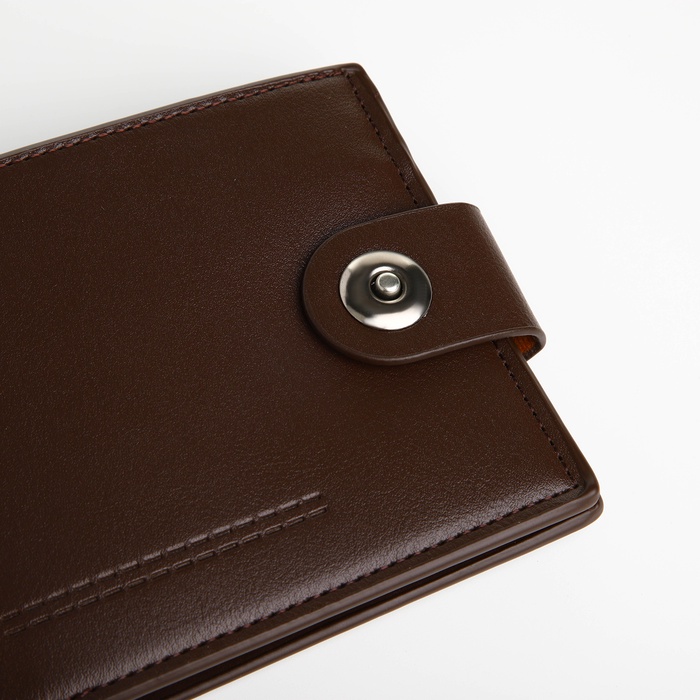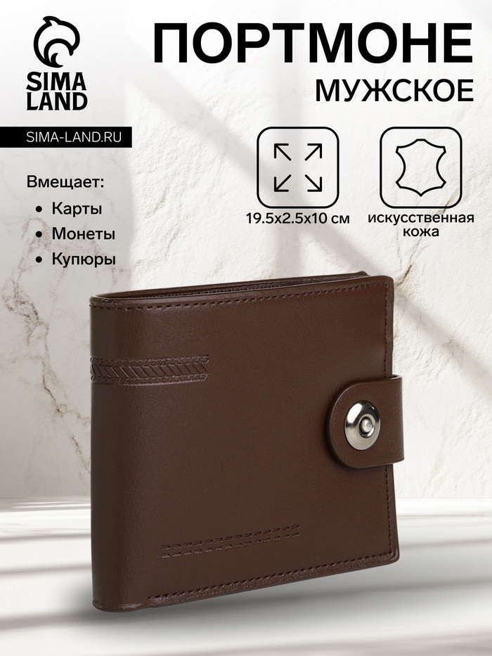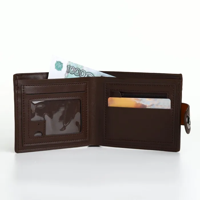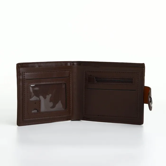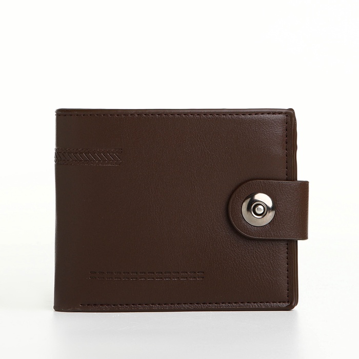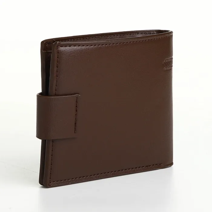 Мужской компактный органайзер для карт и монет с магнитной застёжкой помогает содержать мелкие платежные средства в порядке. Коричневый цвет искусственной кожи создает сдержанный деловой образ, сохраняя практичность для повседневного использования. Магнитная застёжка обеспечивает надёжную защиту содержимого.