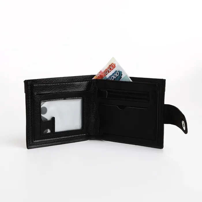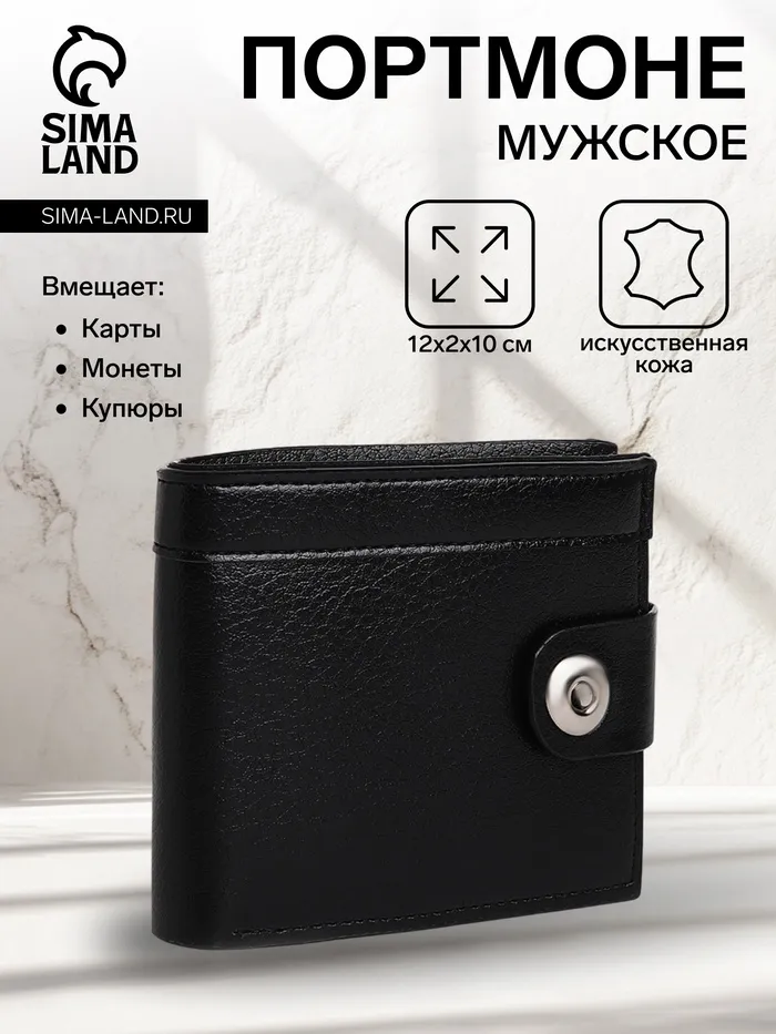 Портмоне мужское на магните, отдел для купюр, для карт, для монет, чёрное — Характеристики