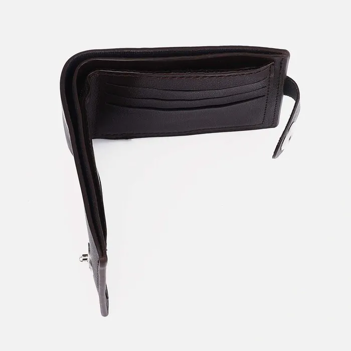 Мужской кошелёк с магнитной застёжкой в тёмно-коричневом цвете — практичное решение для повседневного использования. Искусственная кожа приятна на ощупь и сохраняет презентабельный вид, а магнит надёжно фиксирует содержимое.