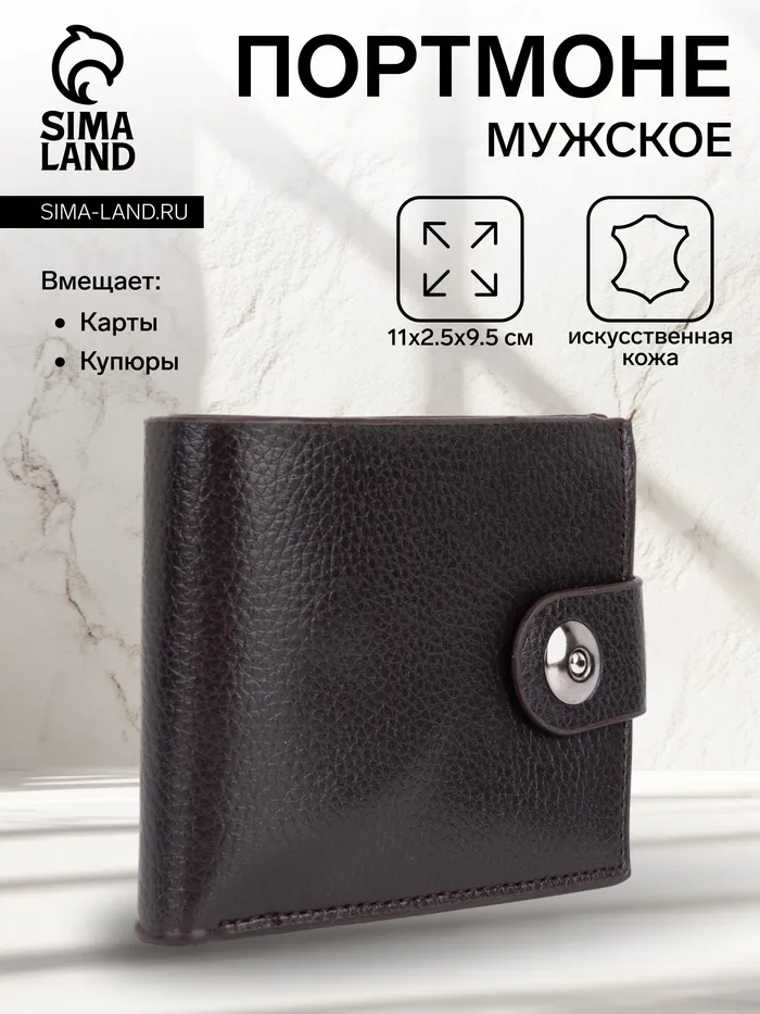 Портмоне мужское на магните, отдел для купюр, для карт, для монет, цвет коричневый — Характеристики