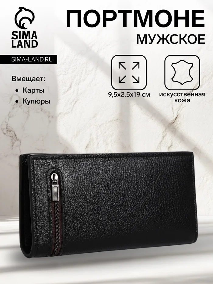 Портмоне мужское на магните, отдел для купюр, для карт, цвет чёрный — Характеристики