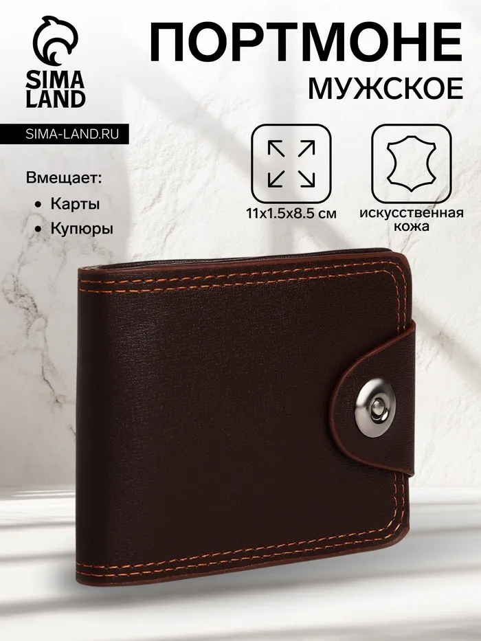 Портмоне мужское на магните, отдел для купюр, для карт, цвет коричневый — Характеристики