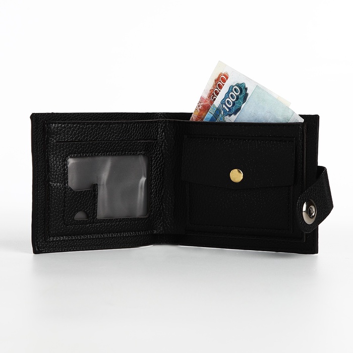 Портмоне мужское на магните, отдел для купюр, карт, монет, цвет чёрный — Характеристики