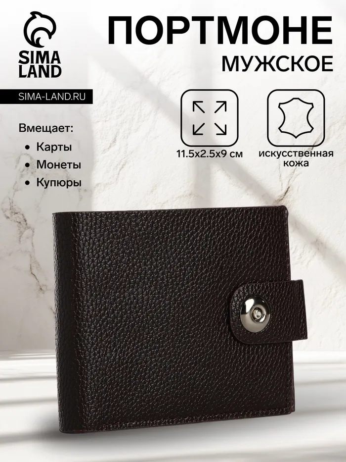 Портмоне мужское на магните, отдел для купюр, карт, монет, цвет коричневый — Характеристики