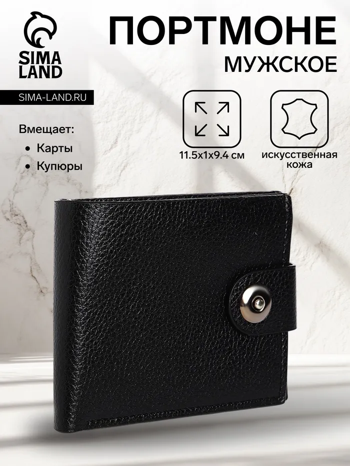 Портмоне мужское на магните, три отделения, флотер, чёрное — Характеристики
