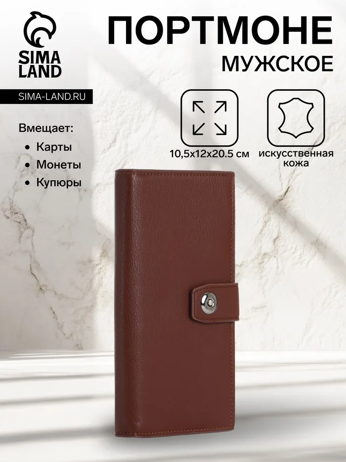 Портмоне мужское, на магните, три отделения, коричневое — Характеристики