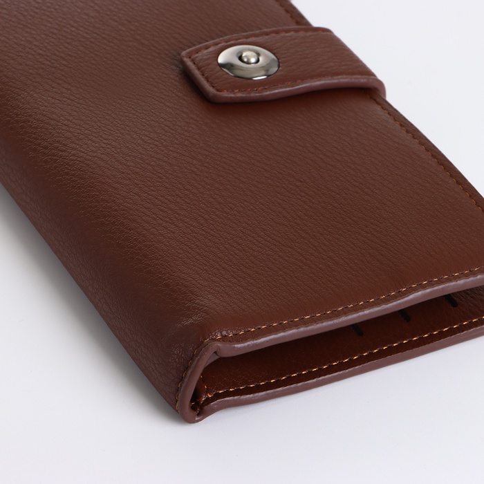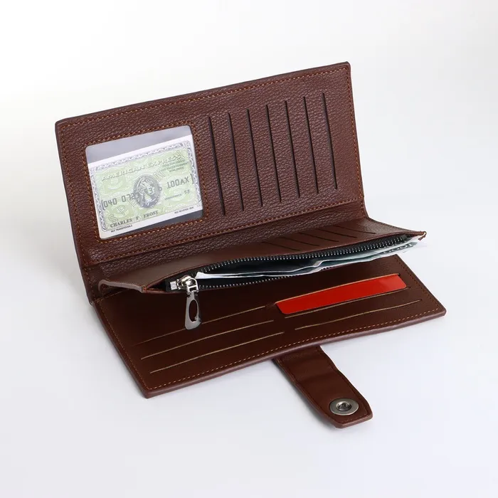 Это коричневое портмоне создаёт ощущение солидности и полного контроля над вашими финансовыми средствами. Оно подходит мужчинам, которые ценят надёжность и вместительность в повседневном использовании.