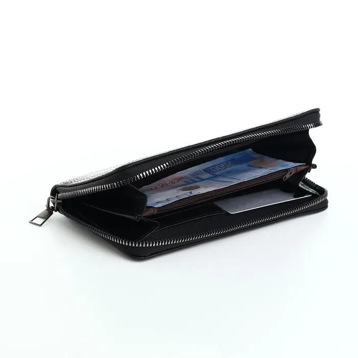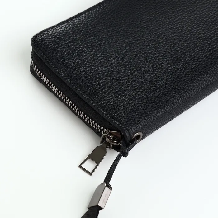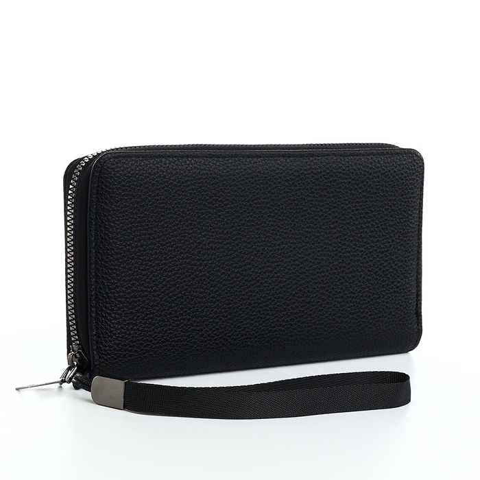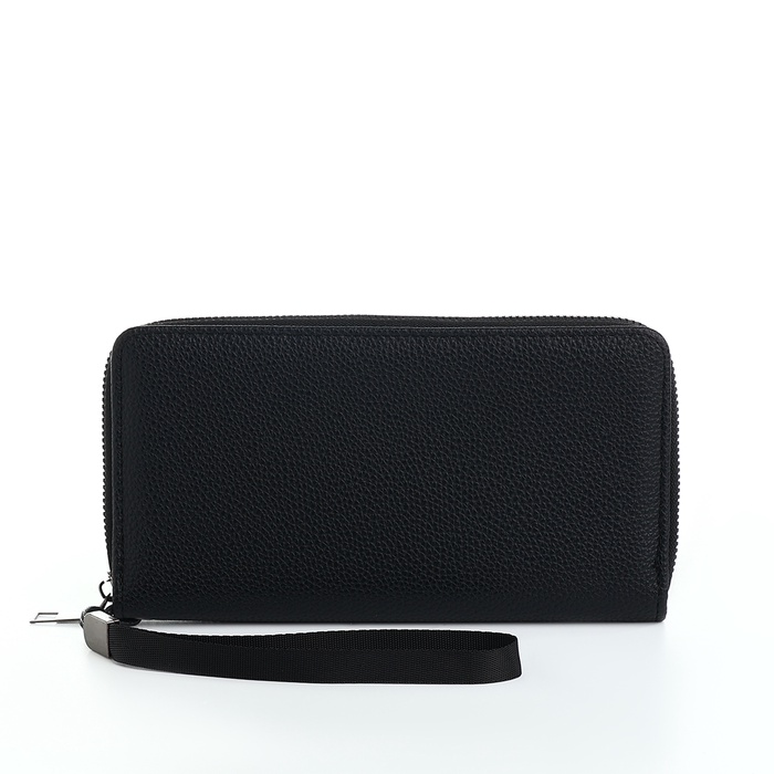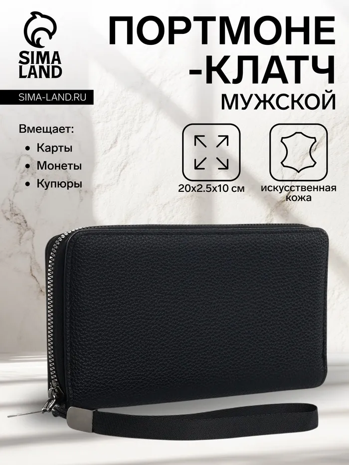 Портмоне мужское, на молнии, 3 отделения, с ручкой, чёрное — Характеристики
