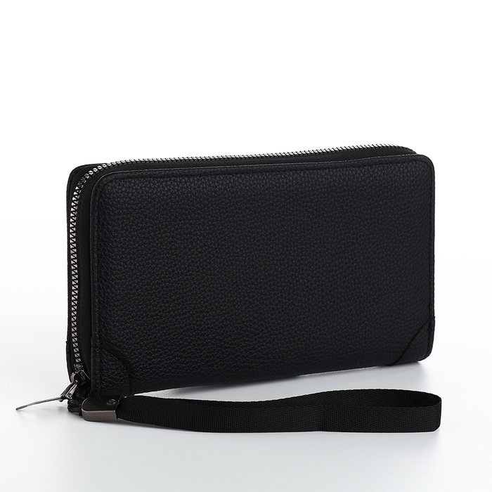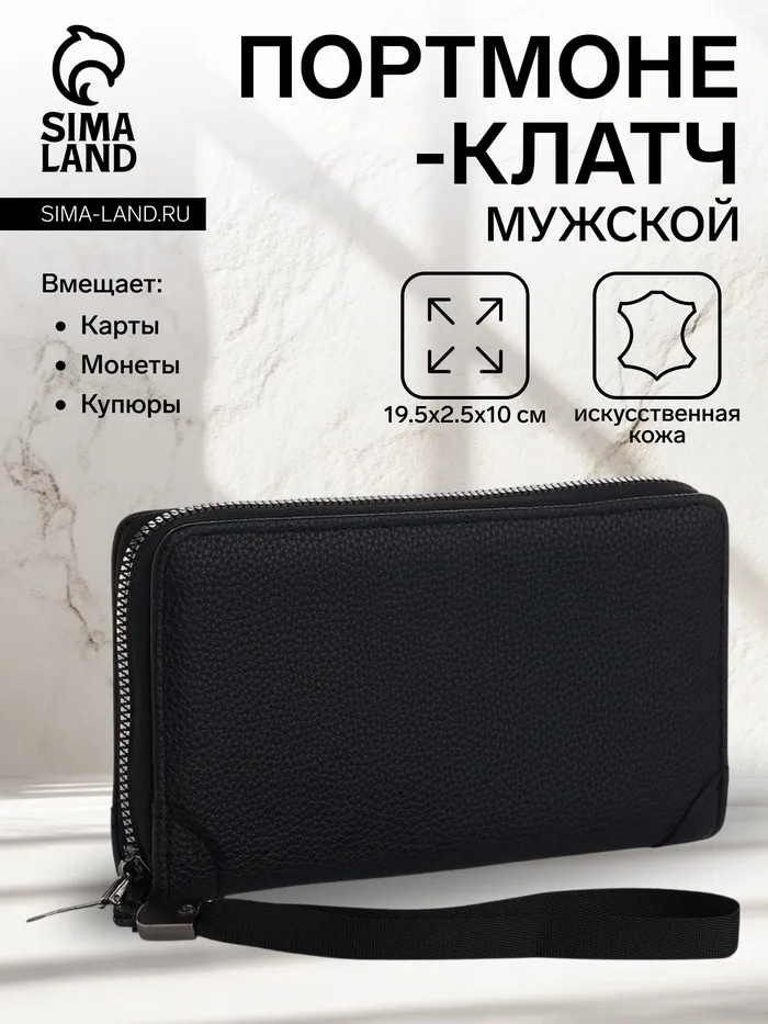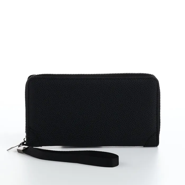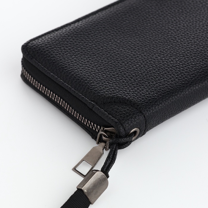 Портмоне мужское на молнии, отдел для карт, монет, чёрное — Характеристики