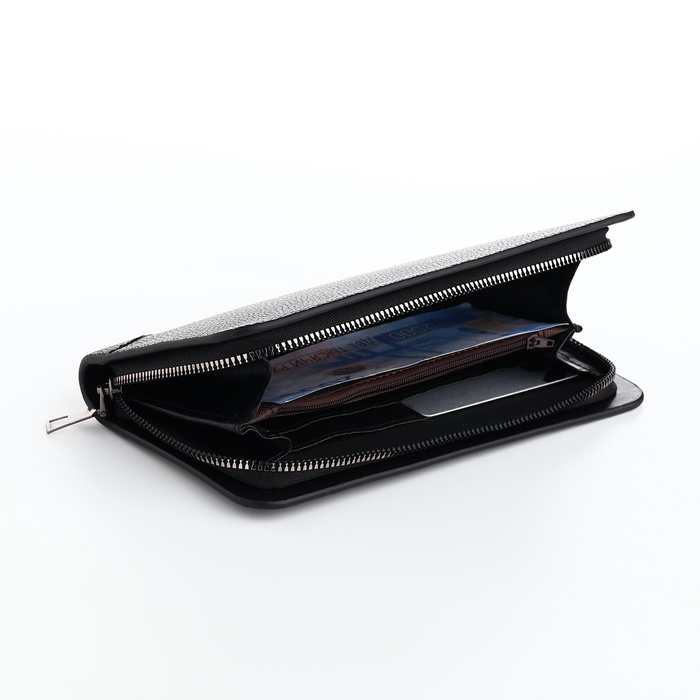 Портмоне мужское на молнии, отдел для карт, монет, цвет чёрный — Характеристики