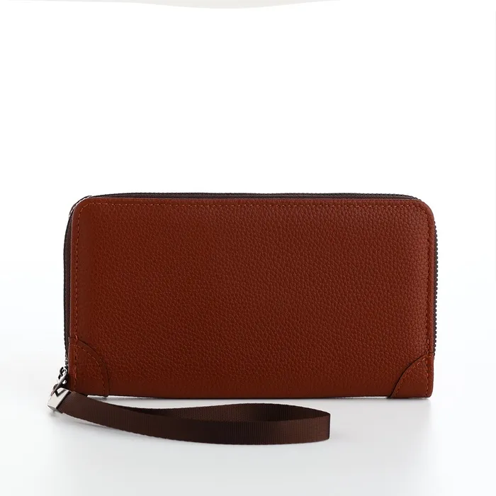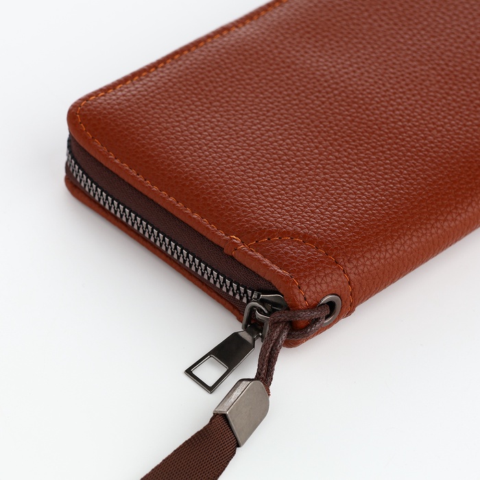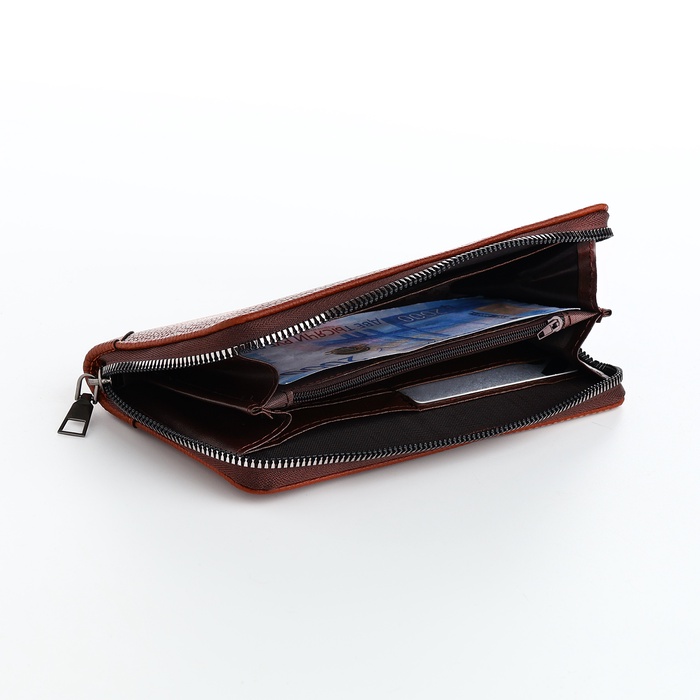 Портмоне мужское на молнии, отдел для карт, монет, цвет коричневый — Характеристики