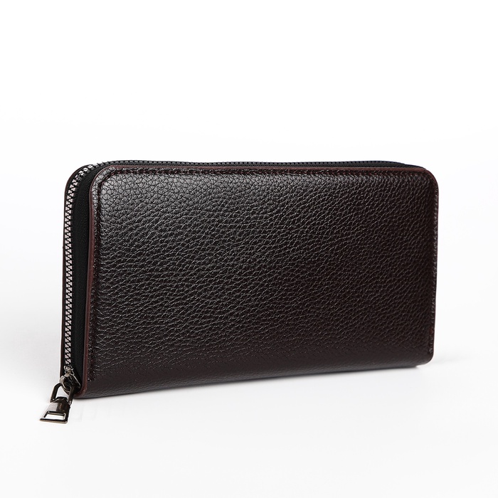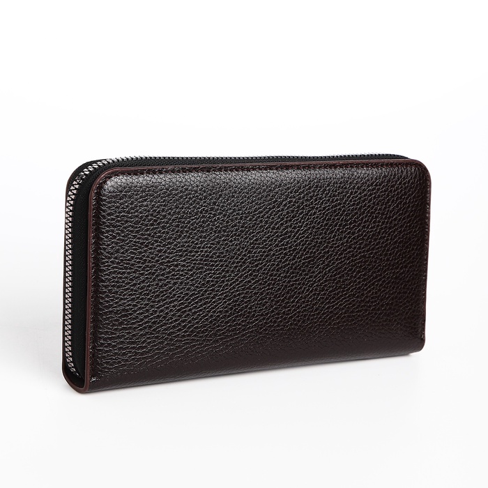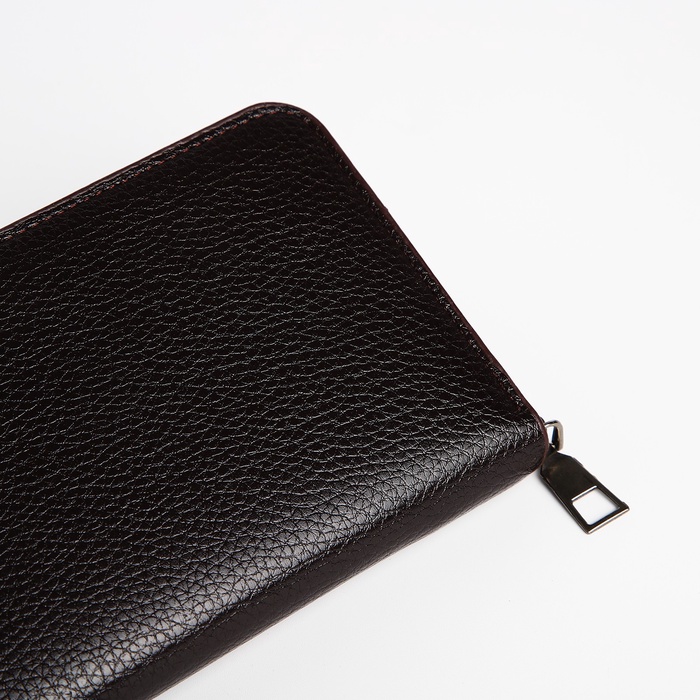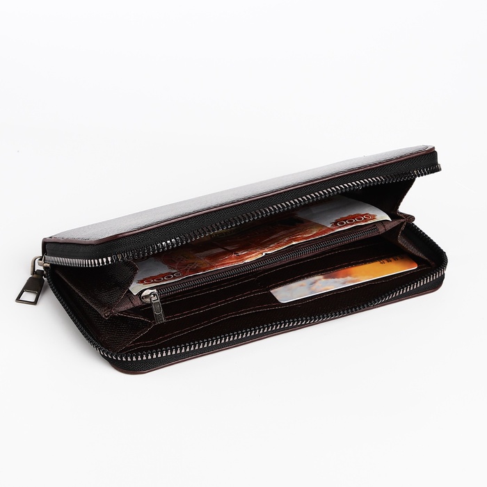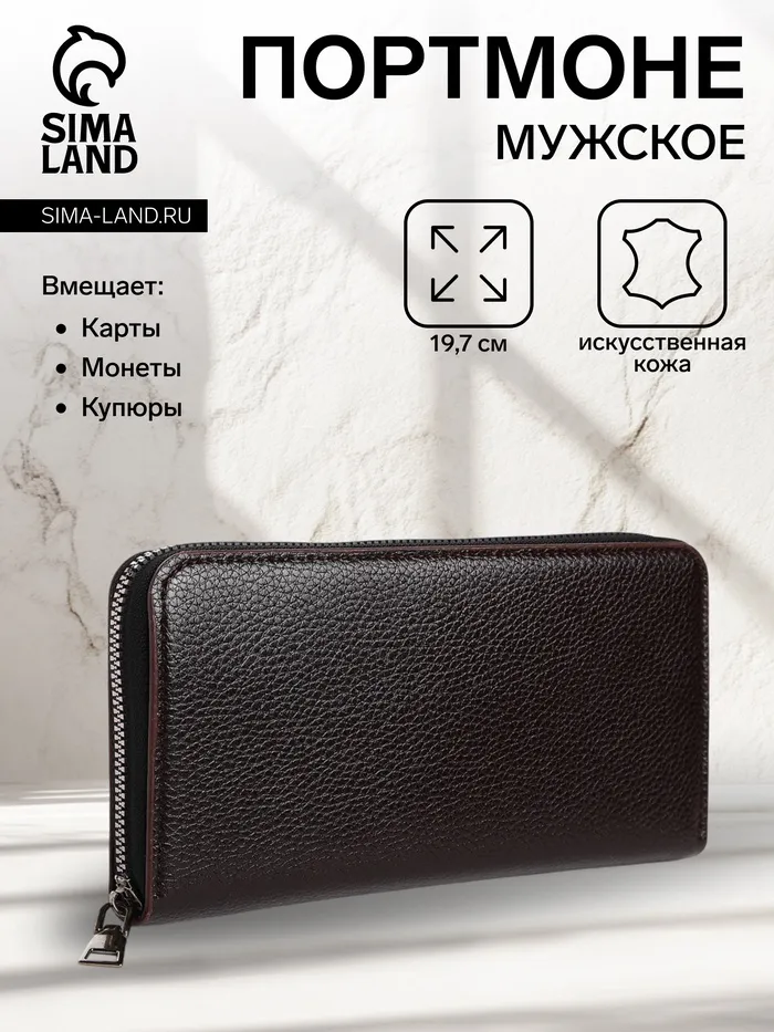Портмоне мужское на молнии, отдел для купюр, для карт, для монет, цвет тёмно-коричневый — Характеристики