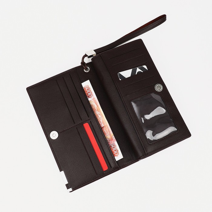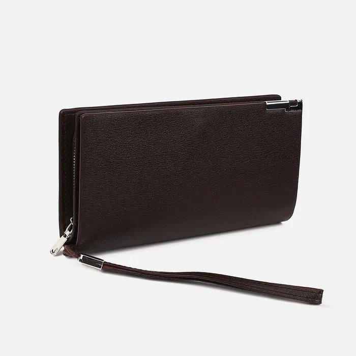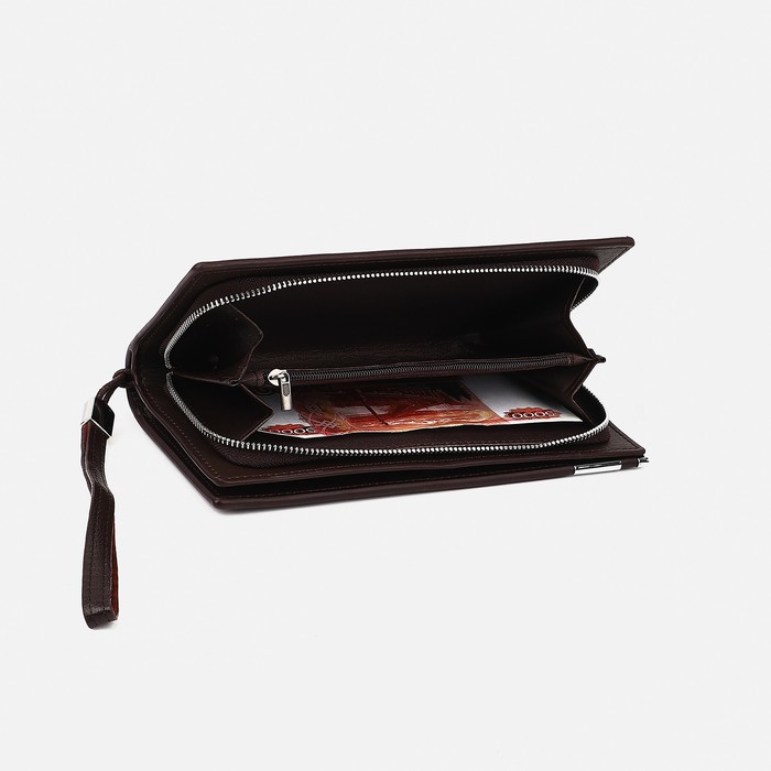 Портмоне мужское на молнии, отдел на магните, с ручкой, цвет коричневый — Характеристики