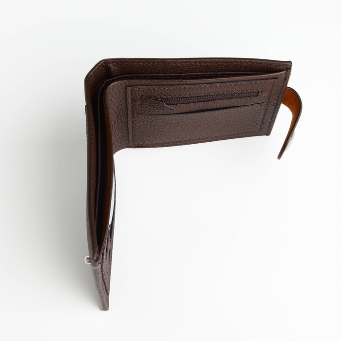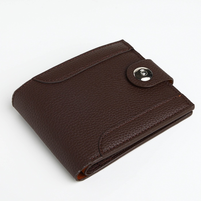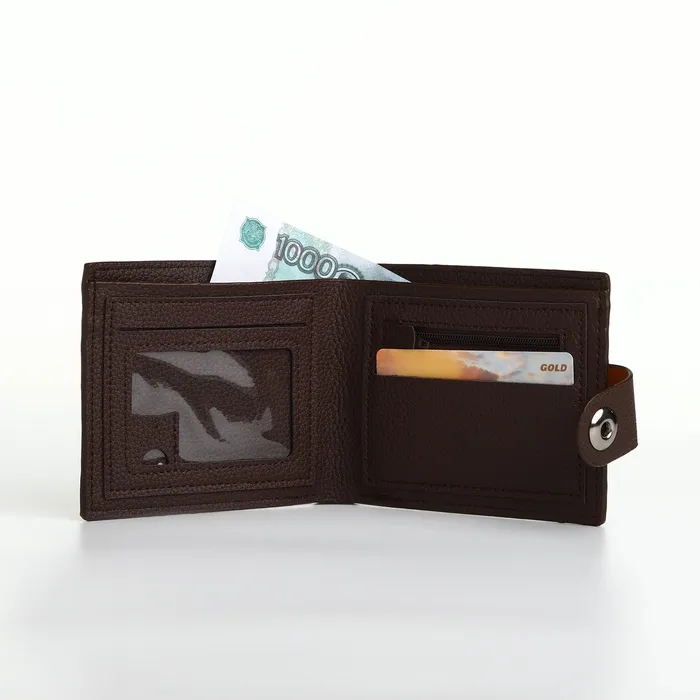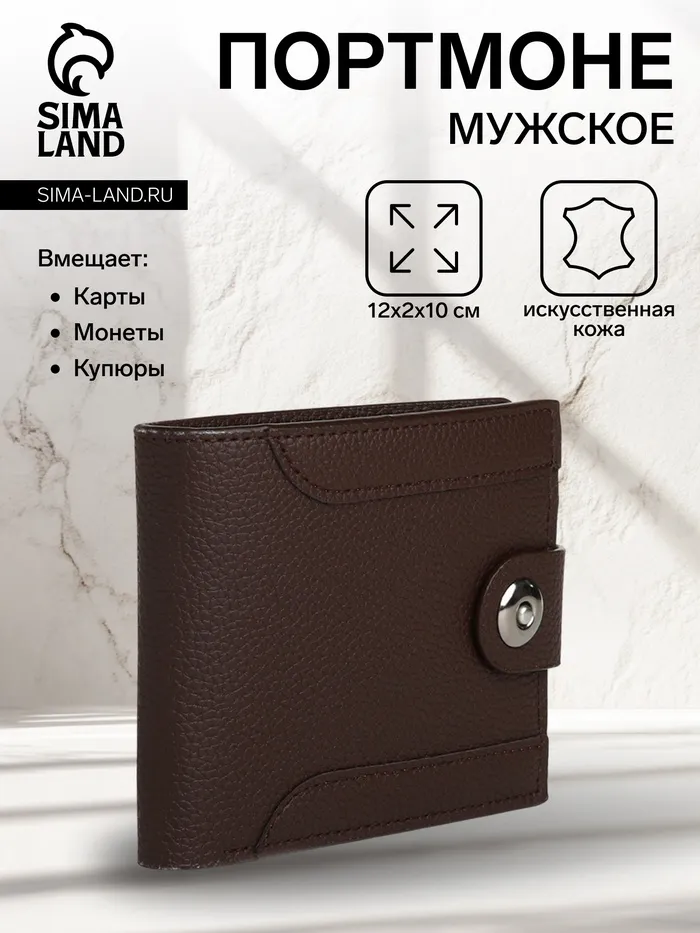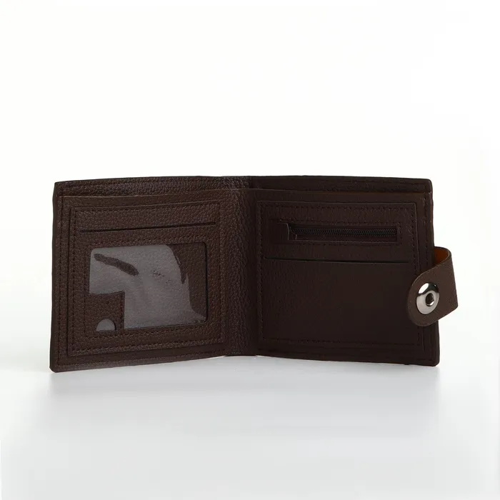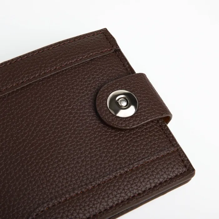 Этот коричневый портмоне создаёт сдержанное пространство для организации финансовых инструментов. Его классический цвет и магнитная застёжка подходят мужчинам, ценящим традиционный стиль в повседневных аксессуарах.
