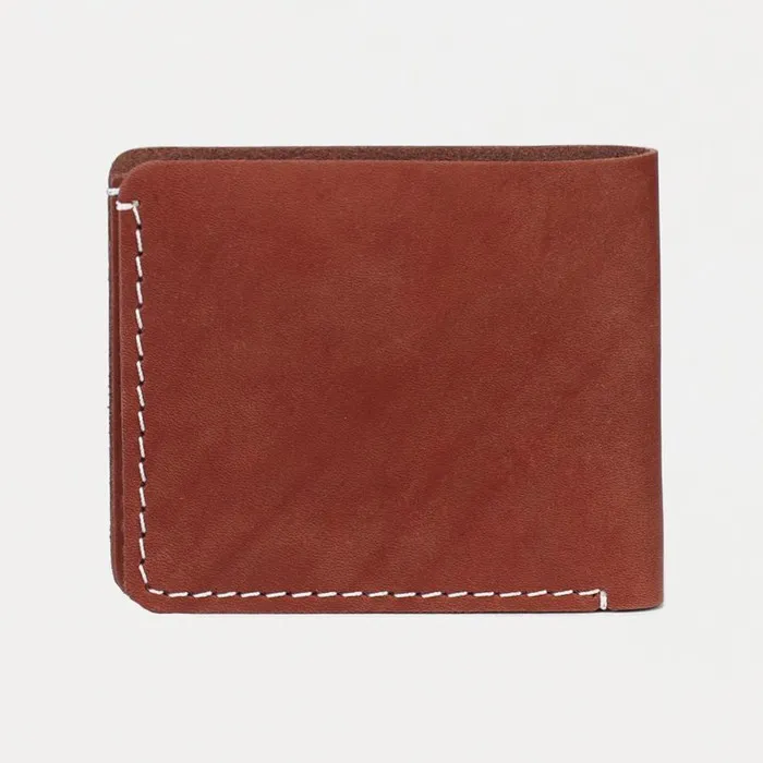Коричневое кожаное портмоне в двойном сложении — минималистичный аксессуар для повседневного ношения. Матовая натуральная кожа приобретает благородный вид со временем, а два отделения удобно организуют карты и банкноты. Компактный размер идеален для переднего кармана брюк.