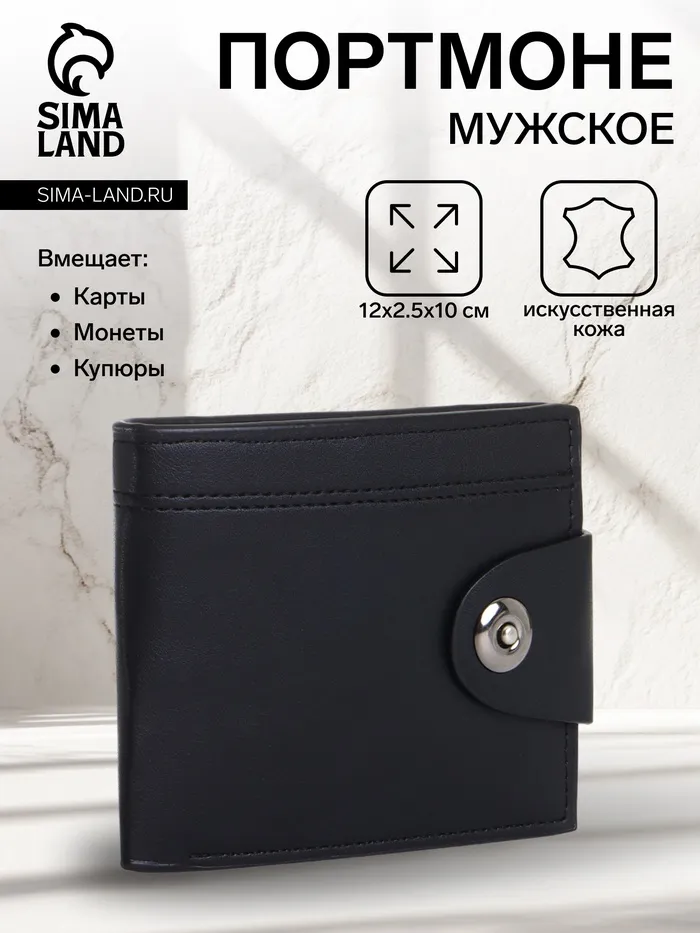 Портмоне мужское, отделение на молнии, на магните, чёрное — Характеристики