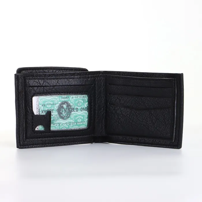 Этот чёрный портмоне создаёт минималистичное пространство для быстрого доступа к платежным средствам. Его открытая конструкция с тремя отделениями подходит для тех, кто ценит скорость в повседневных финансовых операциях.