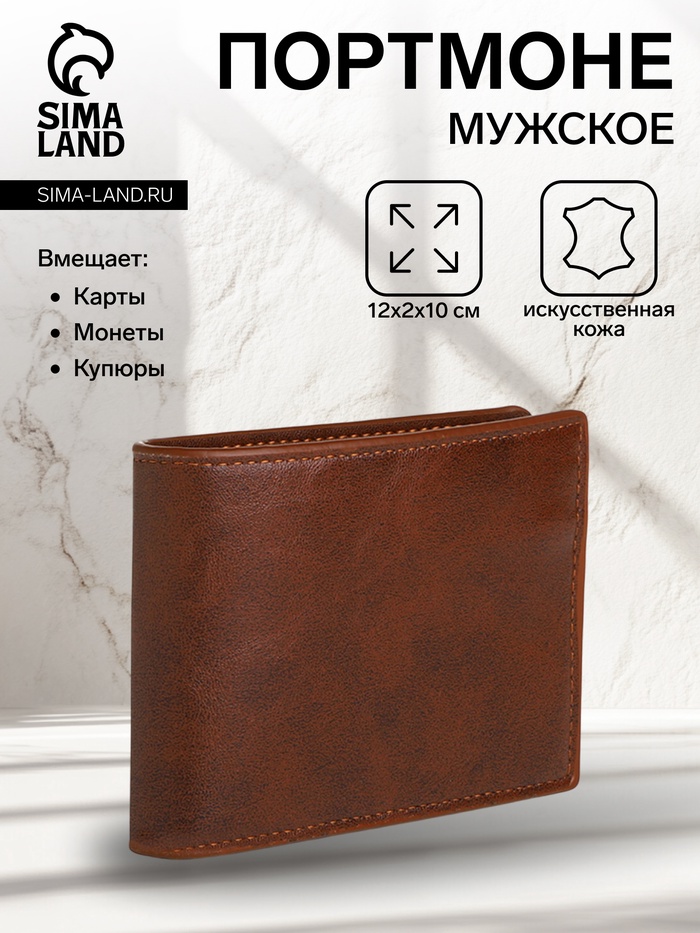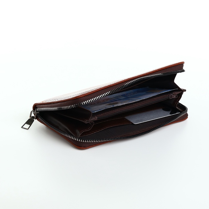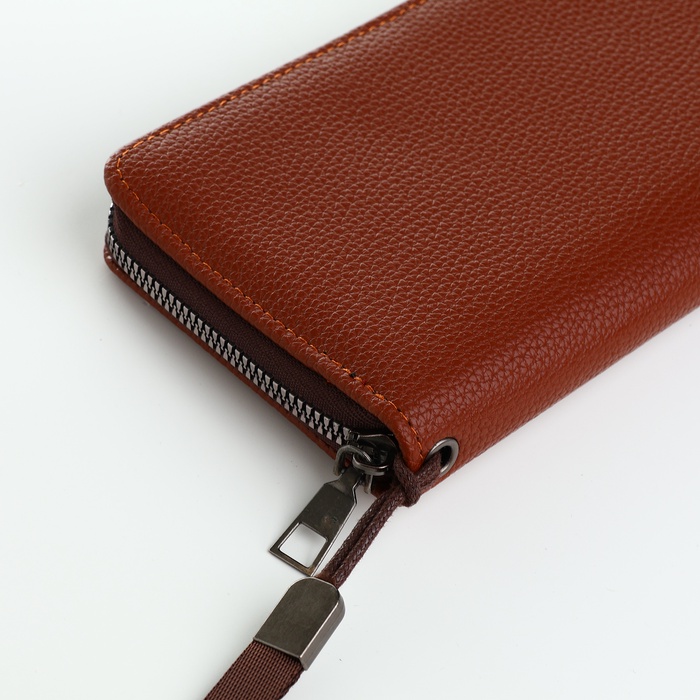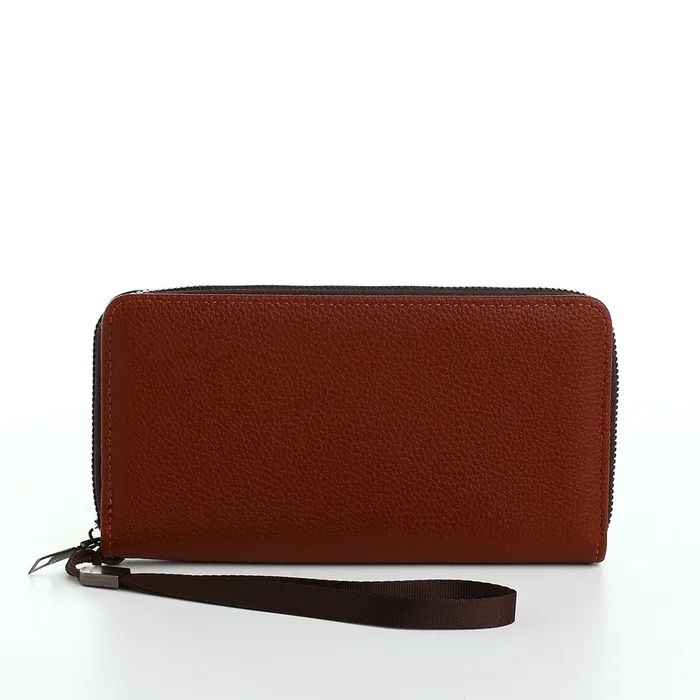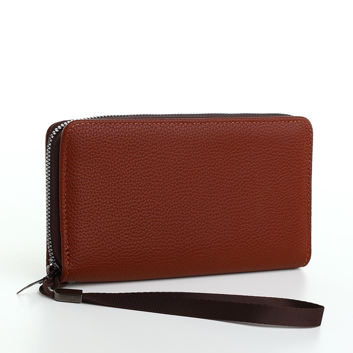 Портмоне мужское, с ручкой, на молнии, 4 отделения, коричневое — Характеристики