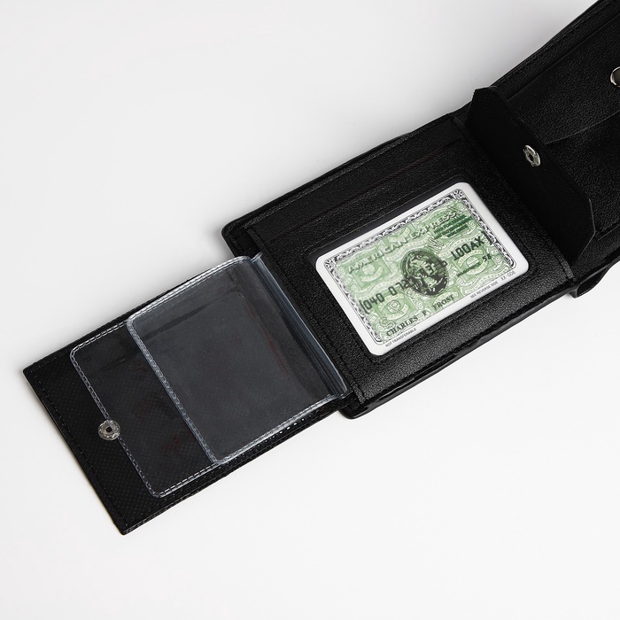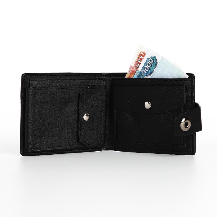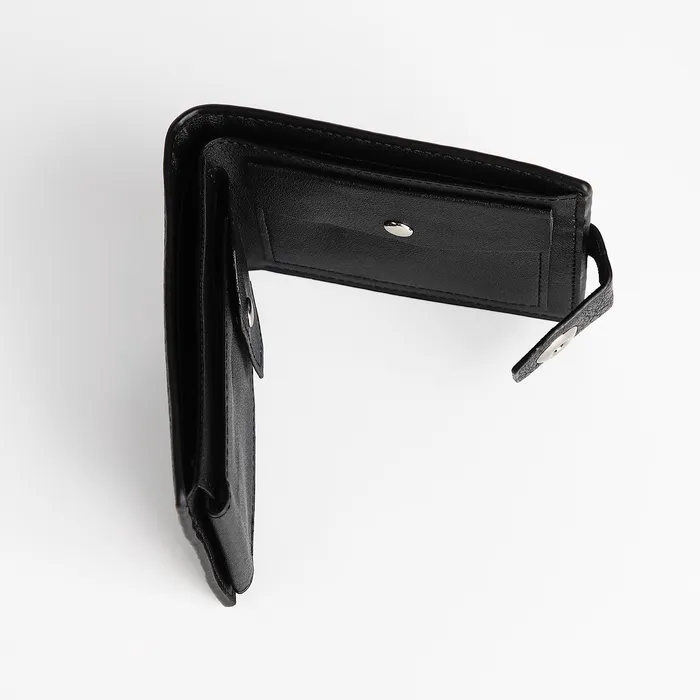 Портмоне мужское «Сахир», на магните, отдел для купюр, для карт, для монет, чёрное — Характеристики