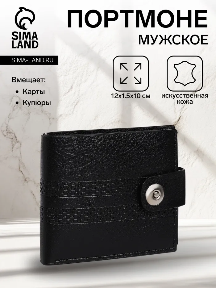 Портмоне мужское «Сахир», на магните, три отделения, чёрное — Характеристики