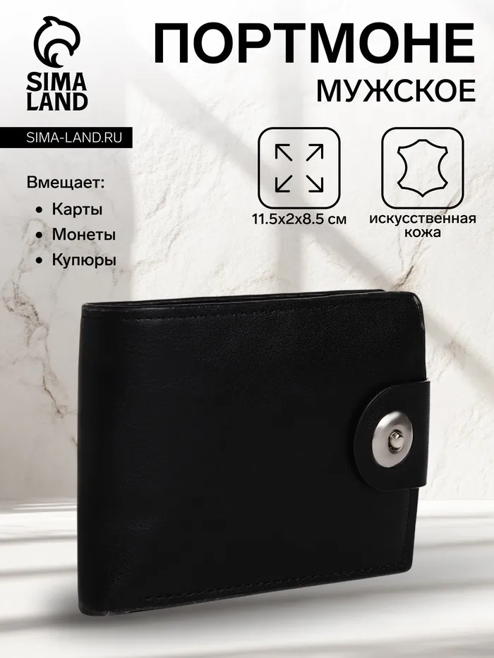 Портмоне мужское «Шафи», на магните, отдел для купюр, для карт, для монет, чёрное — Характеристики