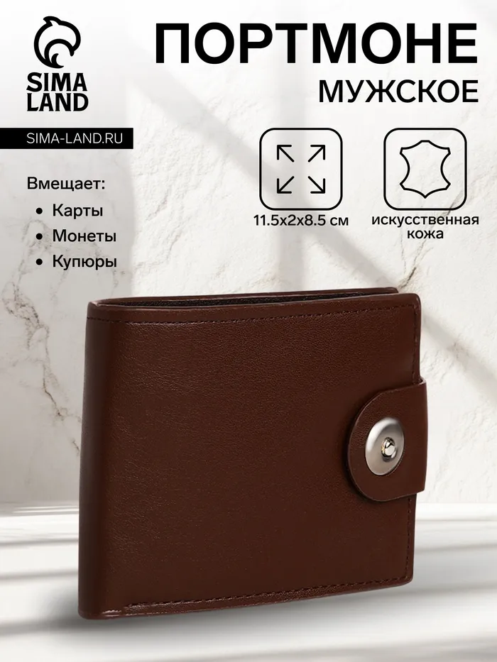 Портмоне мужское «Шафи», на магните, отдел для купюр, для карт, для монет, коричневое — Характеристики