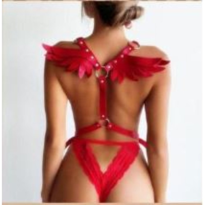 Портупея БДСМ с крыльями, на грудь, экокожа, размер OS, красный — Характеристики