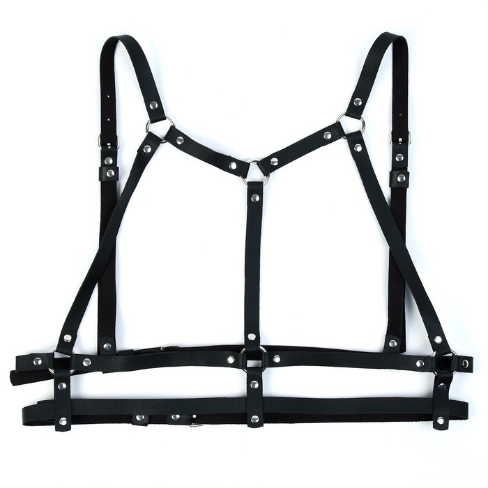 Портупея выполнена из эко-кожи. При помощи ремней портупею можно регулировать, это обеспечит идеальную посадку изделия на теле. Она создаёт сексуальный узор на теле.