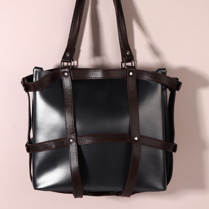 Портупея для сумки из искусственной кожи, 43×35×15 см, цвет коричневый, серебряный — Характеристики