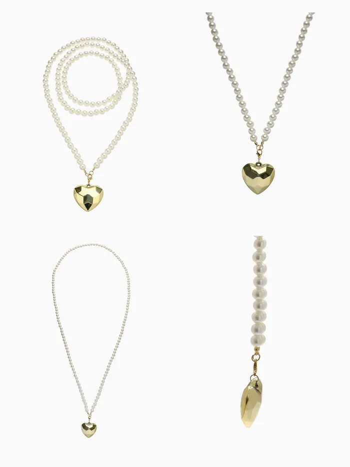 Портупея жемчужная с кулоном «Сердце», 129 см, белая в золоте — Характеристики