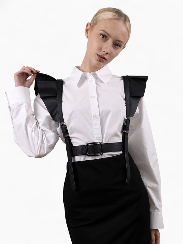 Этот женский ремень-портупея мягко фиксирует линию талии, не стесняя движений, и становится незаметным продолжением образа. Вы получаете уверенность в том, что силуэт остаётся безупречным в течение всего дня.