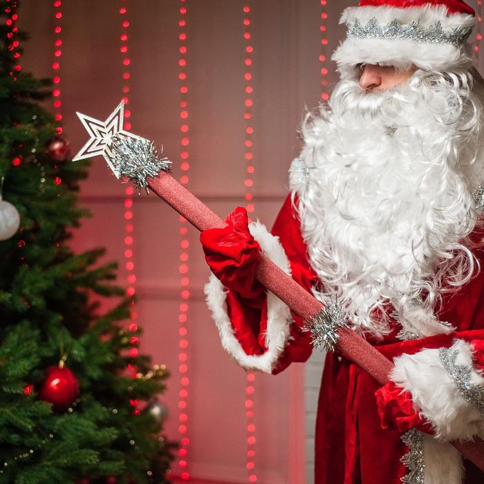 Карнавальный посох Деда Мороза представлен в трёх цветах: красном, синем и золотом.