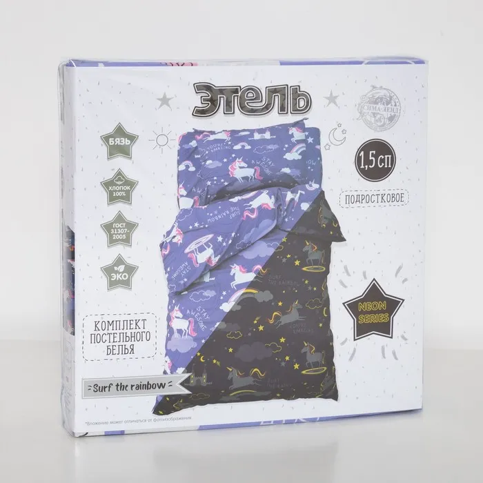 Постельное белье Этель 1,5 сп "Surf the rainbow", 143х215 см, 150х214 см, 50х70 см -1 шт, 100% хлопок, бязь — Характеристики