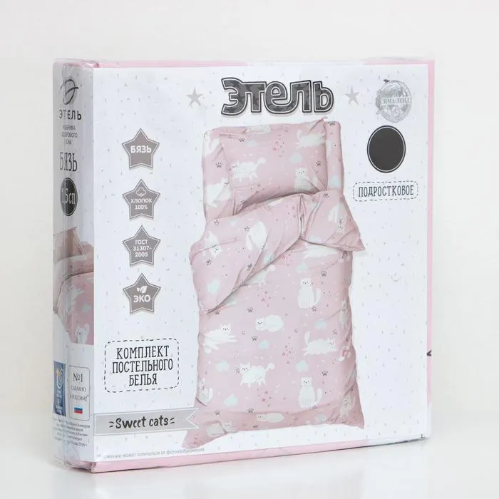 Постельное белье "Этель" 1,5 сп Sweet cats 143х215 см, 150х214 см, 50х70 см -1 шт, 100% хлопок, бязь — Характеристики