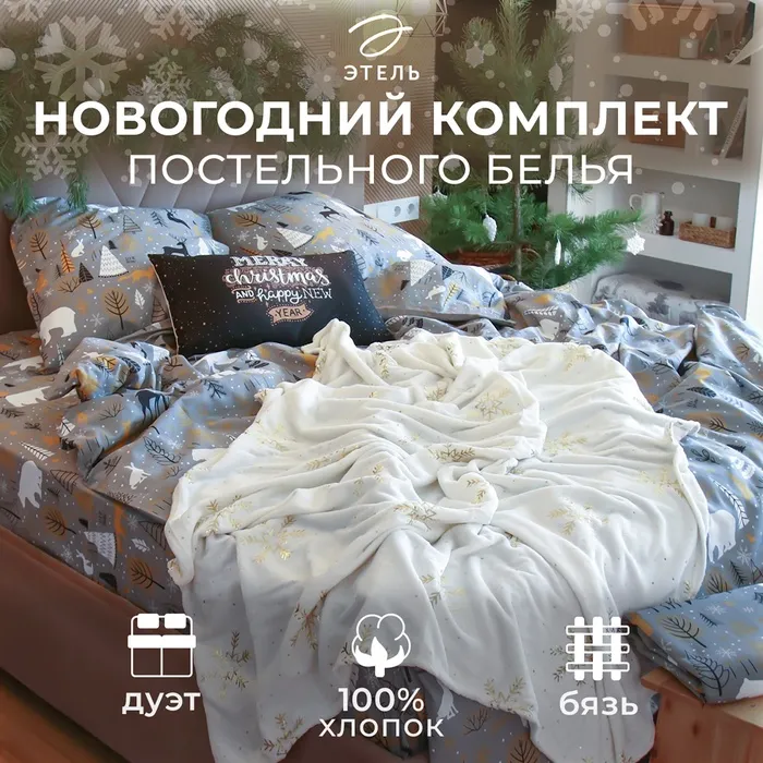 Постельное белье "Этель" Дуэт Let it snow (вид 2) 143*215 см - 2 шт, 240*220 см, 70*70 см - 2 шт — Характеристики