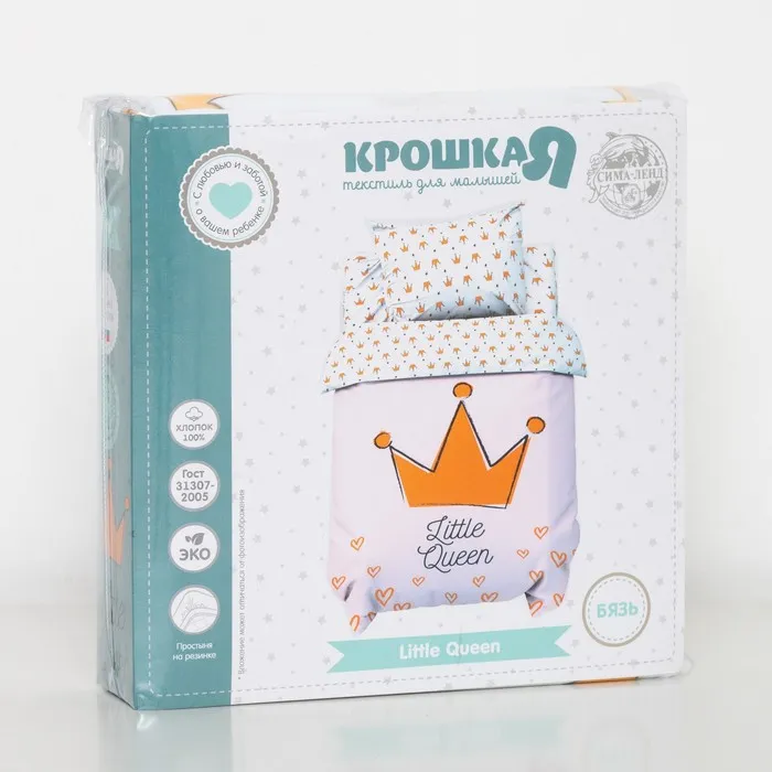 Постельное белье "Крошка Я" Little queen 112*147 см, 60*120+20 см, 40*60 см, 100% хлопок — Характеристики