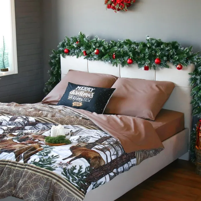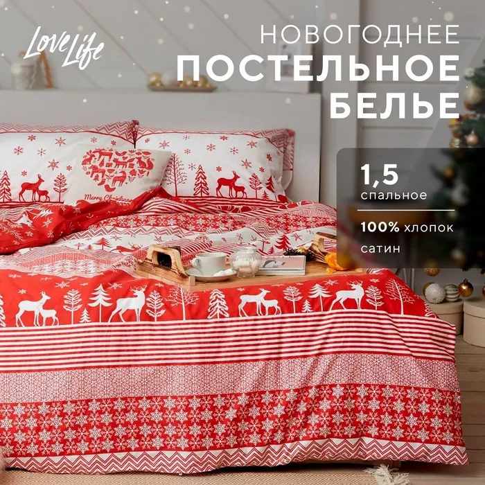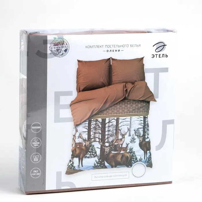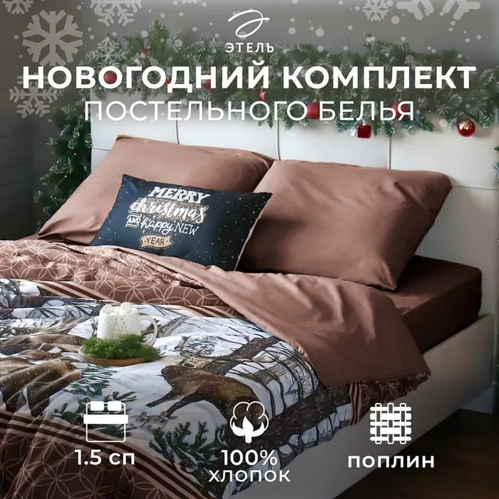Постельное белье новогоднее "Этель" 1.5 сп «Олени» 143*215 см, 150*214 см, 70*70 см - 2 штуки — Характеристики