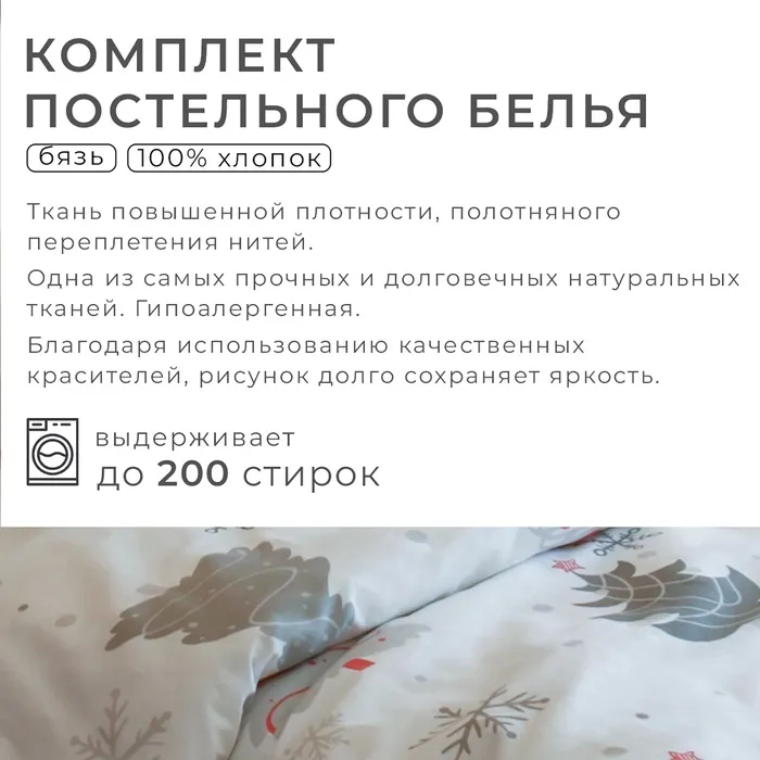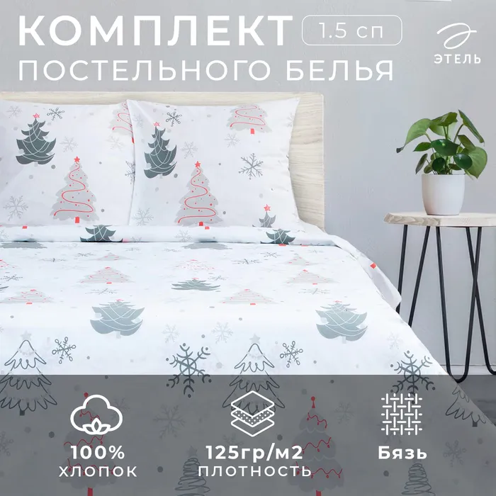 Постельное белье новогоднее "Этель" 1.5сп «Рождественская ель» 143*215см,150*214см,70*70см-2 штуки — Характеристики
