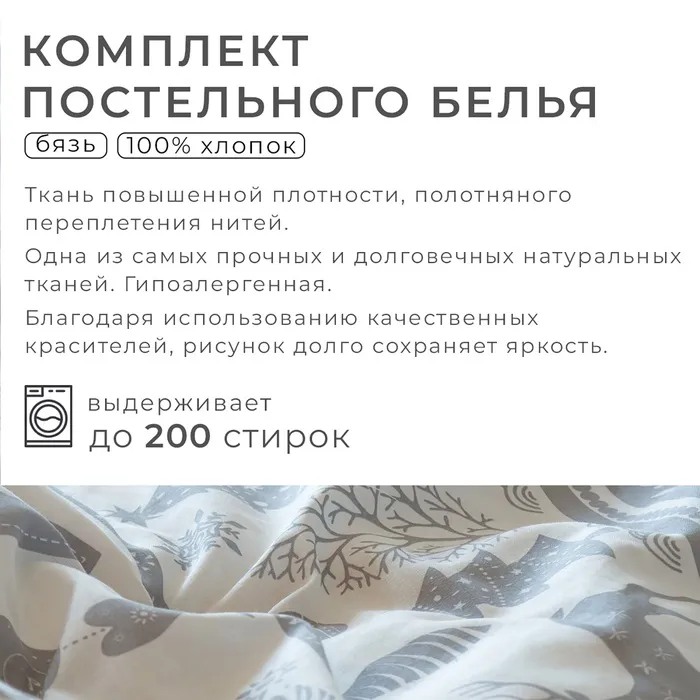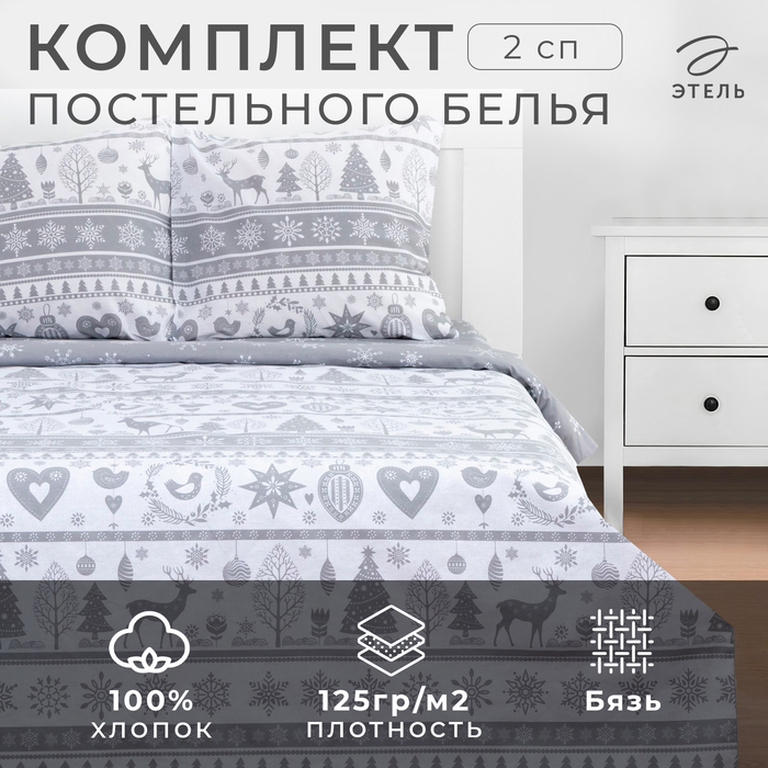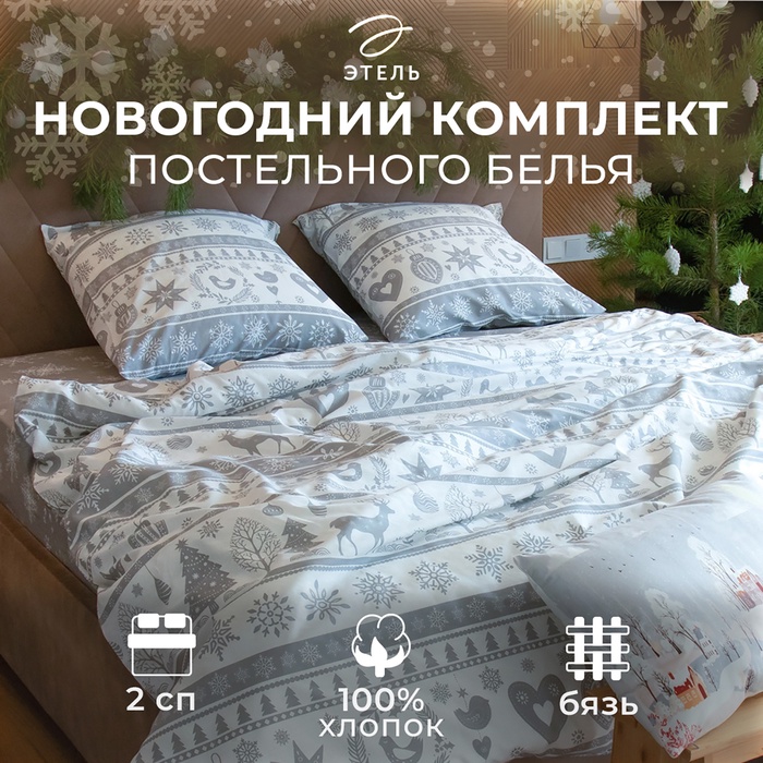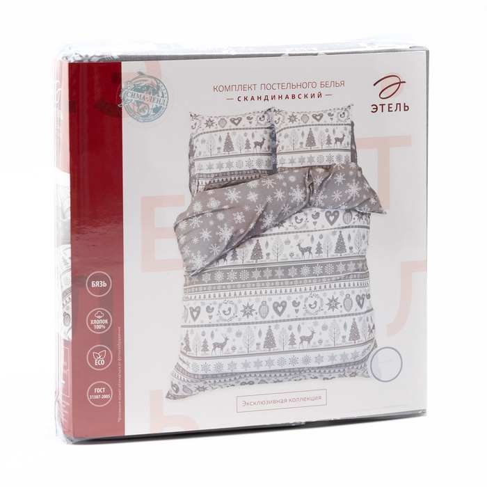 Постельное белье новогоднее "Этель" 2 сп Скандинавский 175*215 см, 200*220 см, 70*70 см - 2 штуки — Характеристики