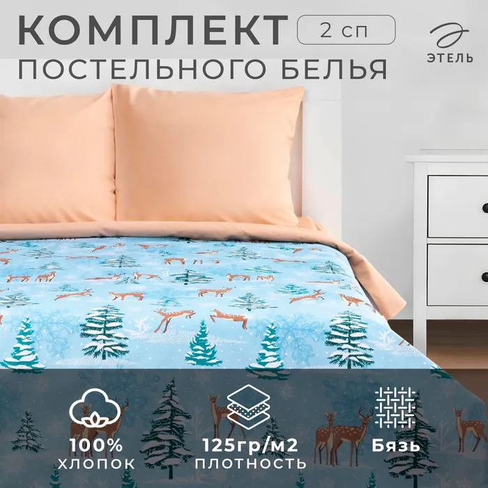Постельное белье новогоднее "Этель" 2 сп Зимнее волшебство 175*215 см, 200*220 см, 70*70 см - 2 штуки — Характеристики