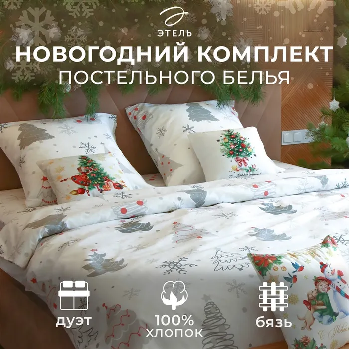 Постельное белье новогоднее "Этель" евро «Рождественская ель» 200*217см,240*220см,70*70см-2 штуки — Характеристики