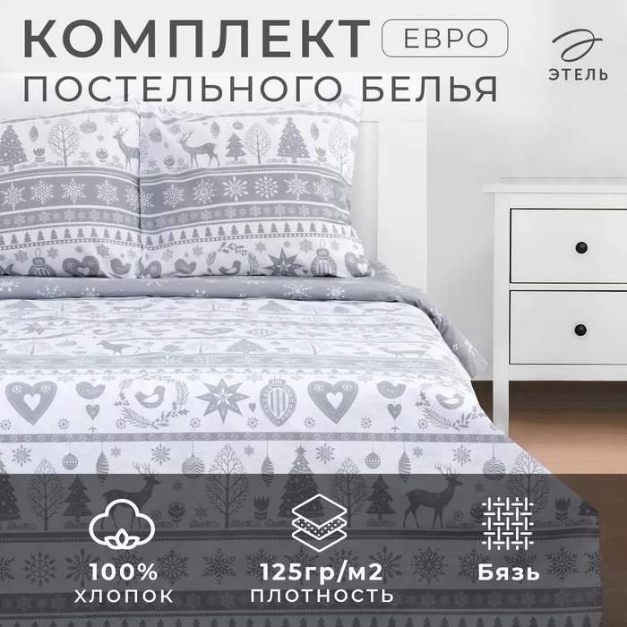 Постельное белье новогоднее "Этель" Евро Скандинавский 200*217 см, 220*240 см, 70*70 см - 2 штуки — Характеристики