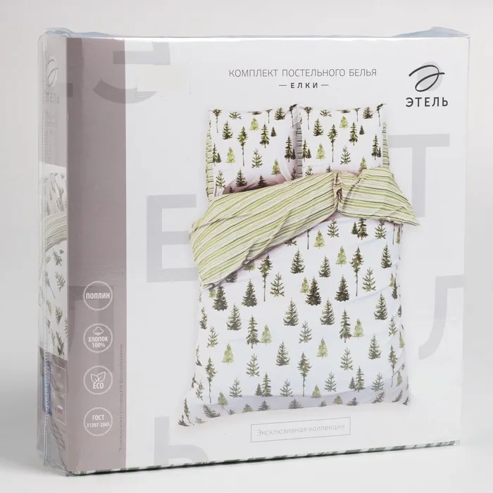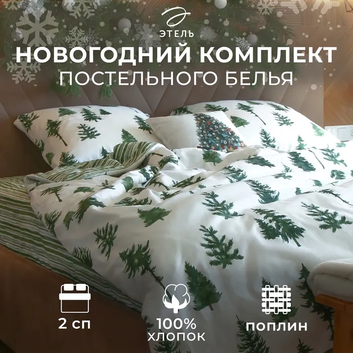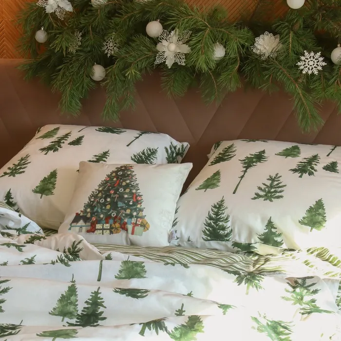 Постельное белье новогоднее Этель «Ёлки» 2 сп 175*215 см, 200*220 см,70*70 см -2 штуки — Характеристики