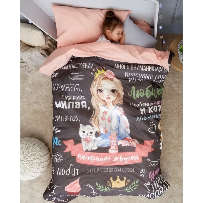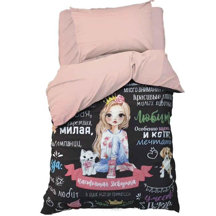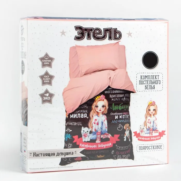 Постельное бельё 1,5 сп. Этель «Настоящая Девушка» 145×210 см, 150×210 см, 50×70 см – 1 шт, 100% хлопок — Характеристики