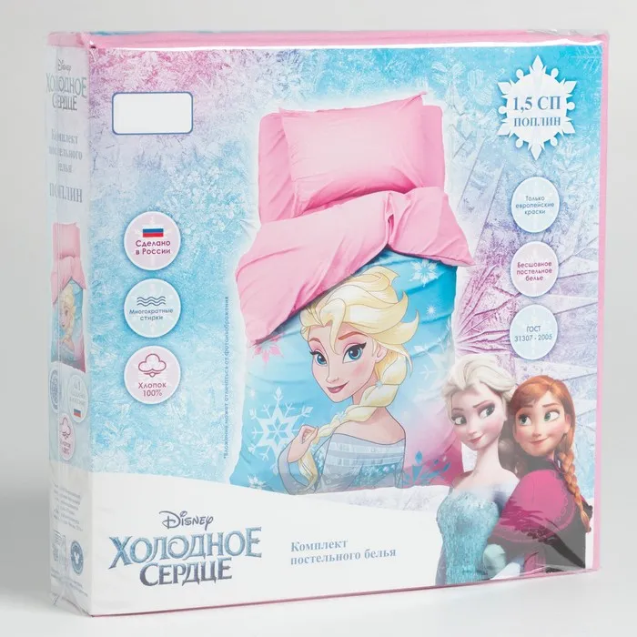 Постельное бельё 1.5 сп «Холодное сердце», 143×215 см, 150×214 см, 50×70 см-1 шт., хлопок 100%, поплин — Характеристики