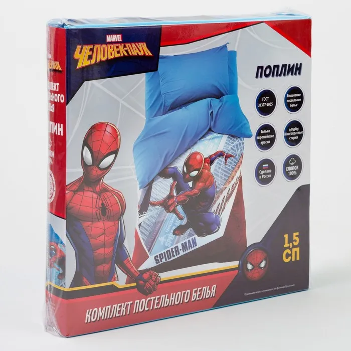 Постельное бельё 1.5 сп «Супер-герой», 143×215 см, 150×214 см, 50×70 1-шт., хлопок 100%, поплин — Характеристики