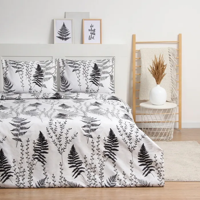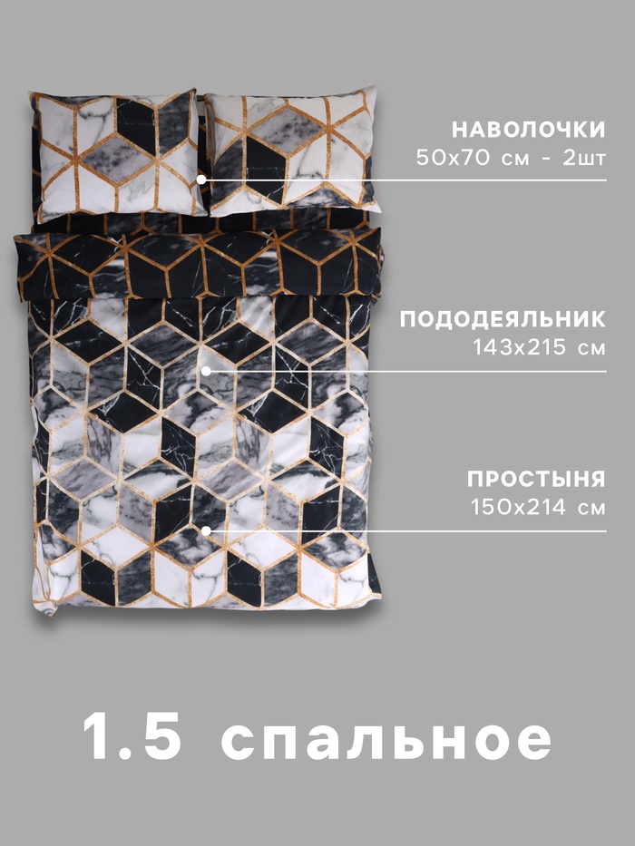 - Комплектация для удобства: В набор входят два стильных пододеяльника (143х215 см) и две наволочки (50х70 см) с удобным клапанным типом застежки, а также простыня (150х214 см).