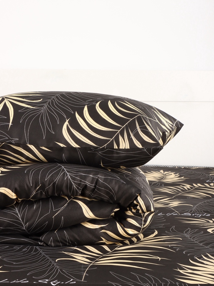 Постельное бельё 1.5-спальное «Экономь и Я», микрофибра 60 г/м², чёрное, золотое — Характеристики