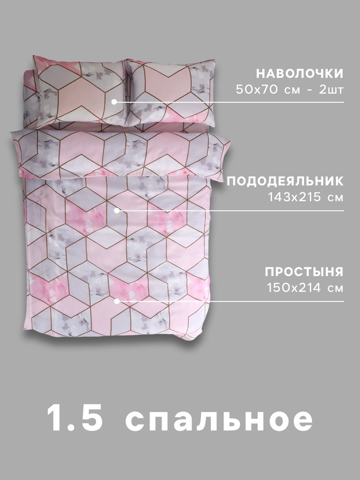 Постельное бельё 1.5-спальное «Экономь и Я», микрофибра 60 г/м², розовое, белое — Характеристики